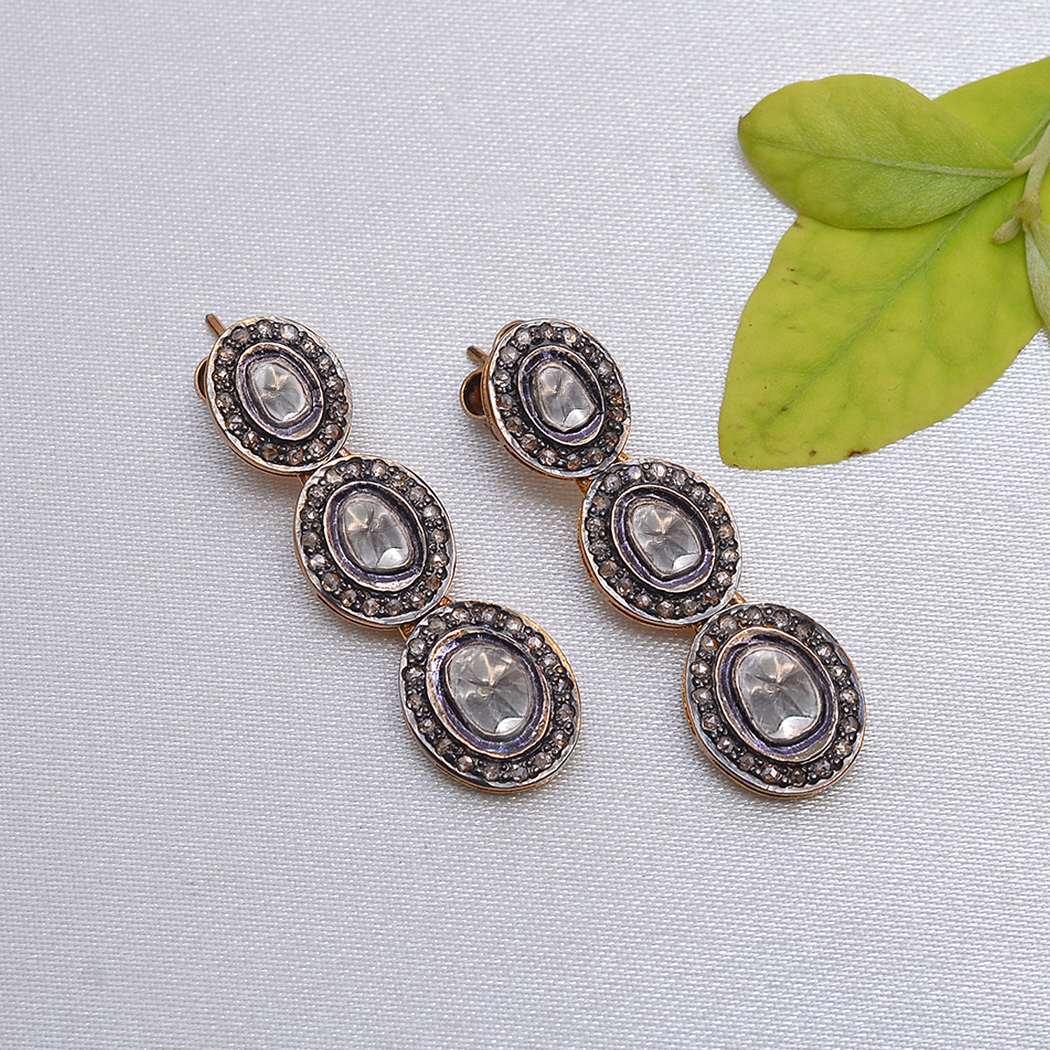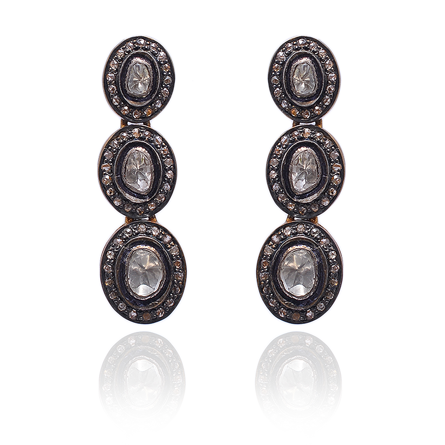 Celebrate vintage elegance with these Victorian-inspired earrings, featuring brilliant diamond polkis paired with raw uncut diamonds set in sterling silver. The intricate design captures the timeless charm of classic craftsmanship while showcasing the natural beauty and sparkle of each stone. Perfect for those who love refined luxury and unique detailing, these earrings make a stunning statement for any special occasion.