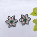 Experience luxury with these exquisite earrings featuring vibrant emeralds, sparkling diamond polkis, and raw uncut diamonds, all set in sterling silver. This harmonious blend of polished and natural stones creates a dazzling contrast, reflecting timeless elegance and artisanal craftsmanship. Perfect for special occasions or adding a regal touch to everyday wear, these earrings celebrate the beauty of traditional design with a contemporary edge.
