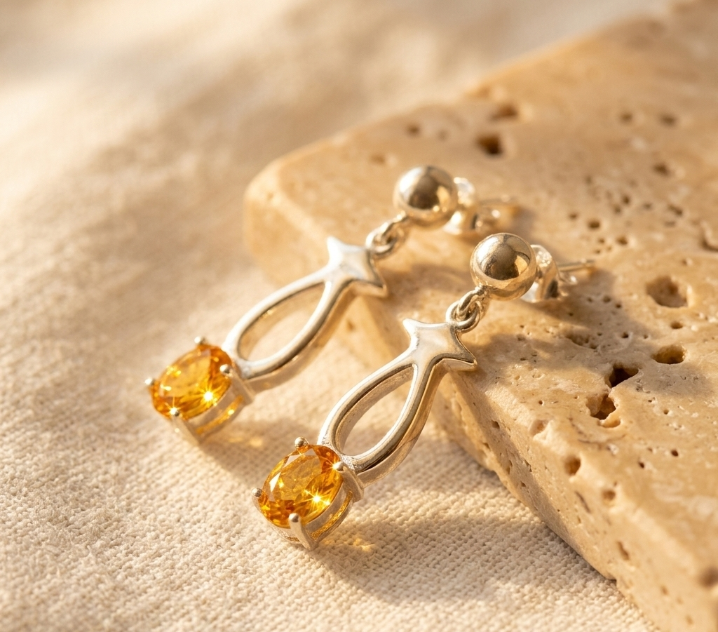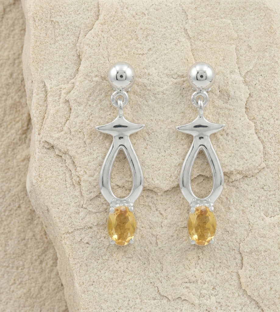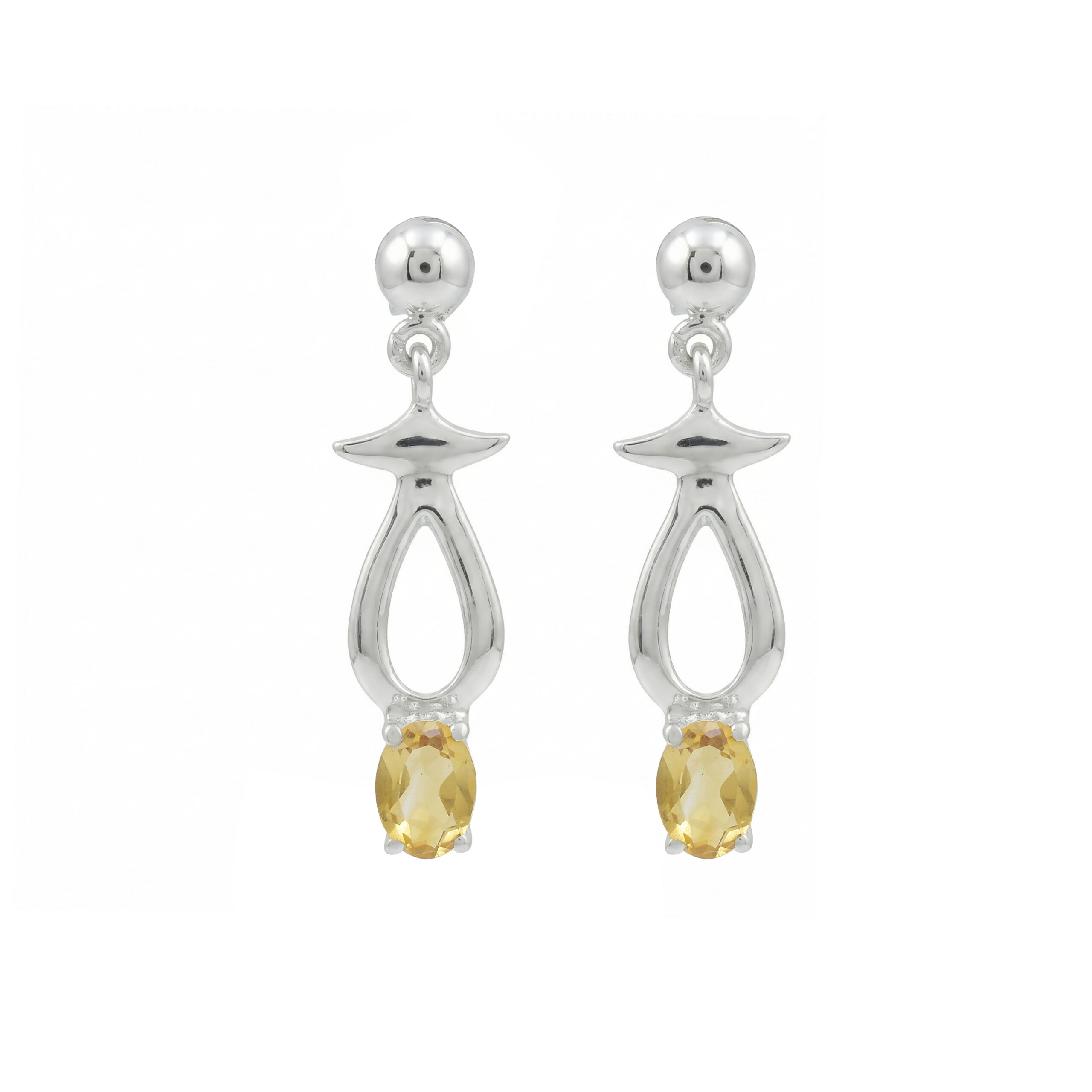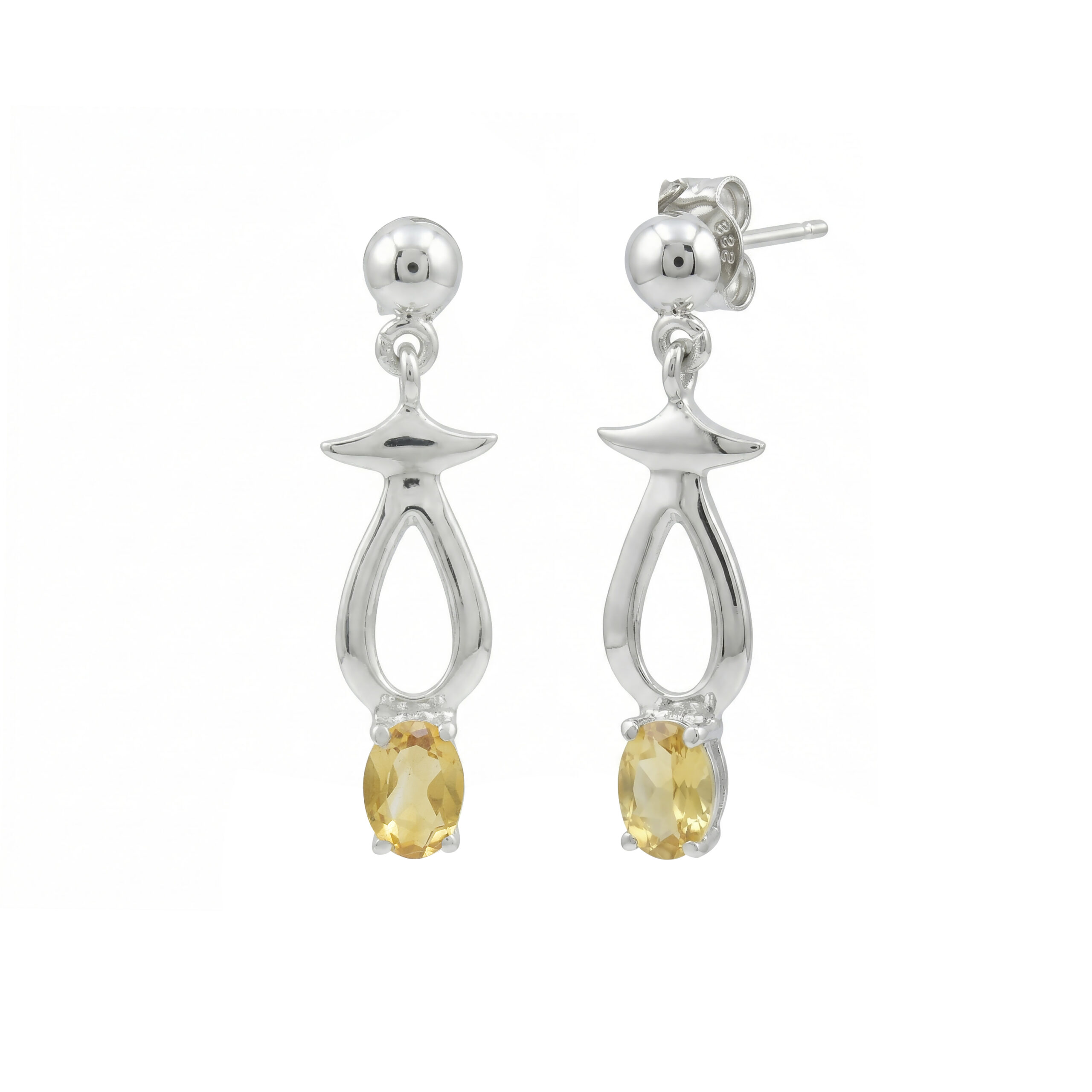 These stunning dangles feature genuine, oval-cut citrine gemstones suspended from a uniquely designed 925 sterling silver frame. The geometric, teardrop-inspired silhouette offers a modern twist on classic gemstone jewelry.
