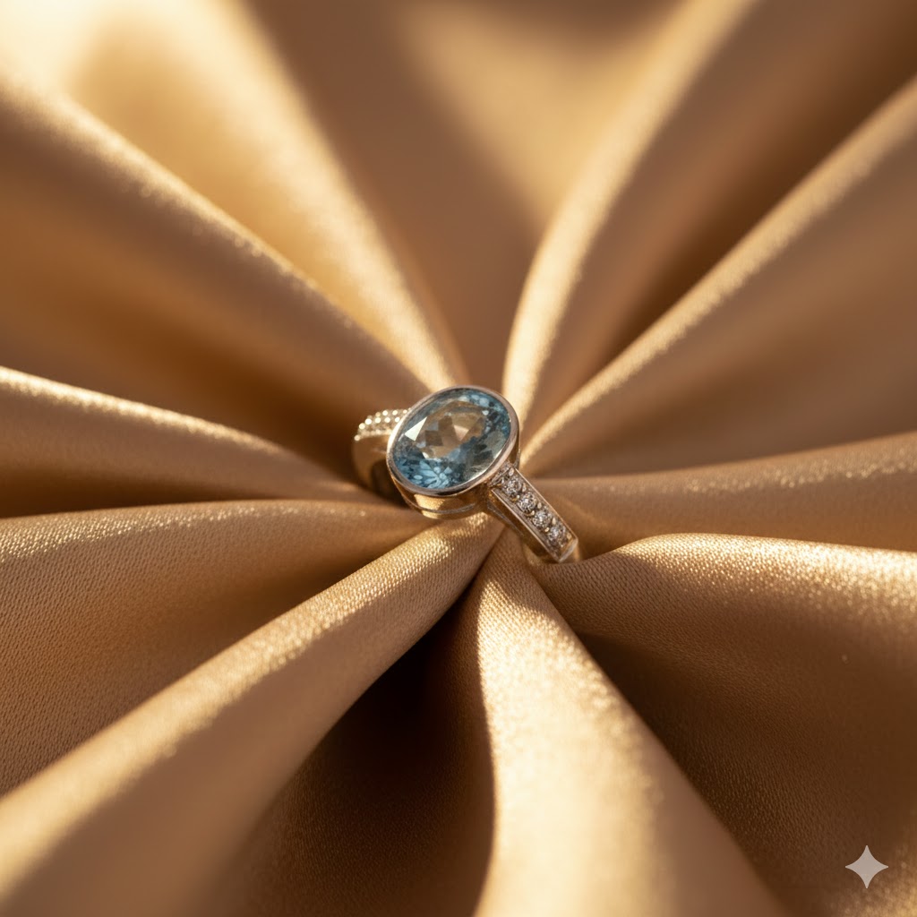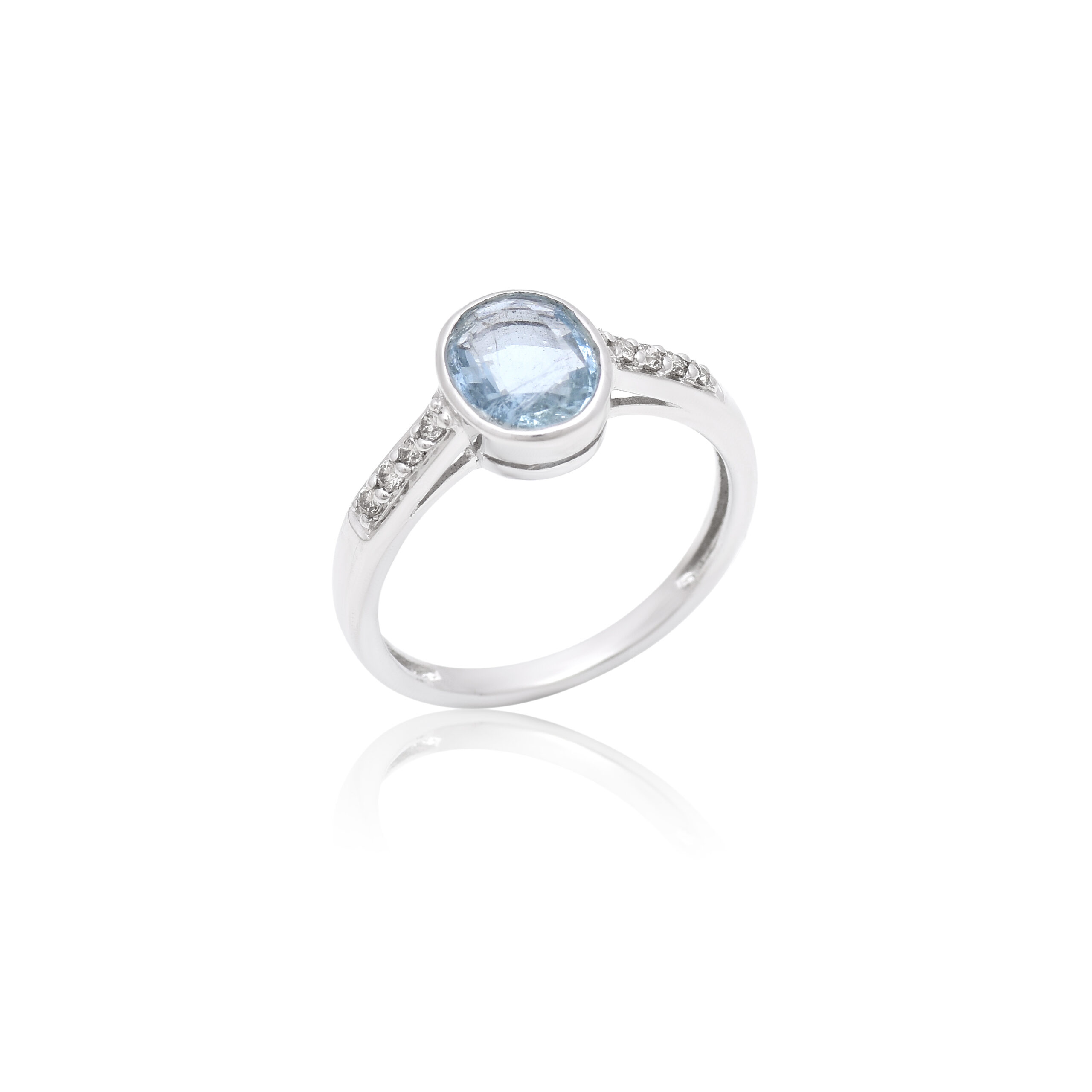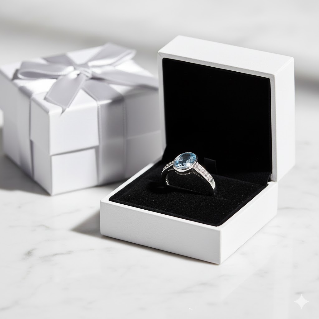 This elegant 925 sterling silver ring features a luminous oval-cut aquamarine that captures the serene clarity of tropical waters. Surrounded by a brilliant halo of genuine diamond accents, it offers a sophisticated sparkle that makes it a perfect “something blue” or a timeless March birthstone gift.