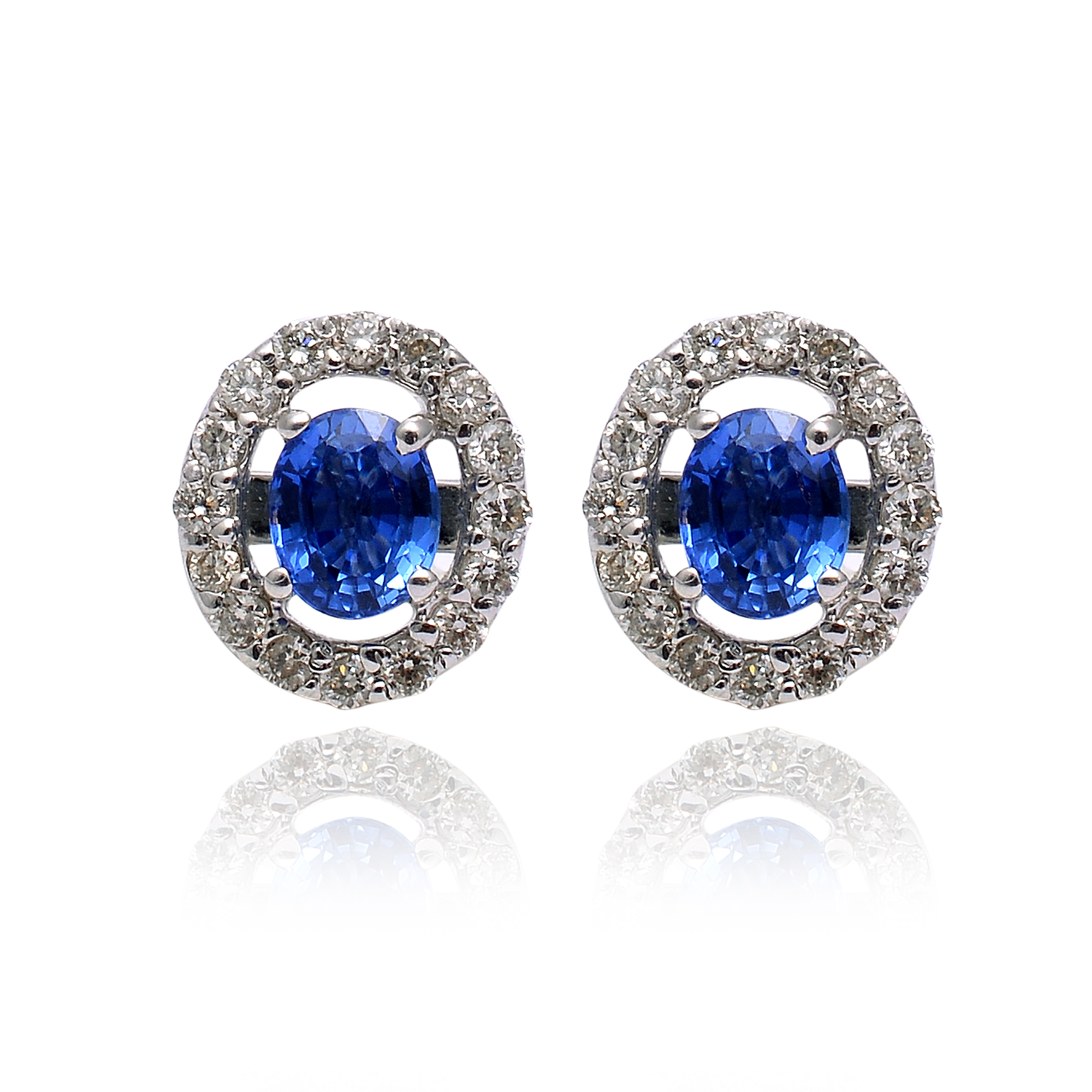 Crafted in 18KT white gold, these earrings highlight enchanting oval-shaped blue sapphires that radiate rich allure. Surrounded by sparkling diamonds, they capture light with timeless brilliance. A perfect harmony of elegance and sophistication, made to elevate every occasion.