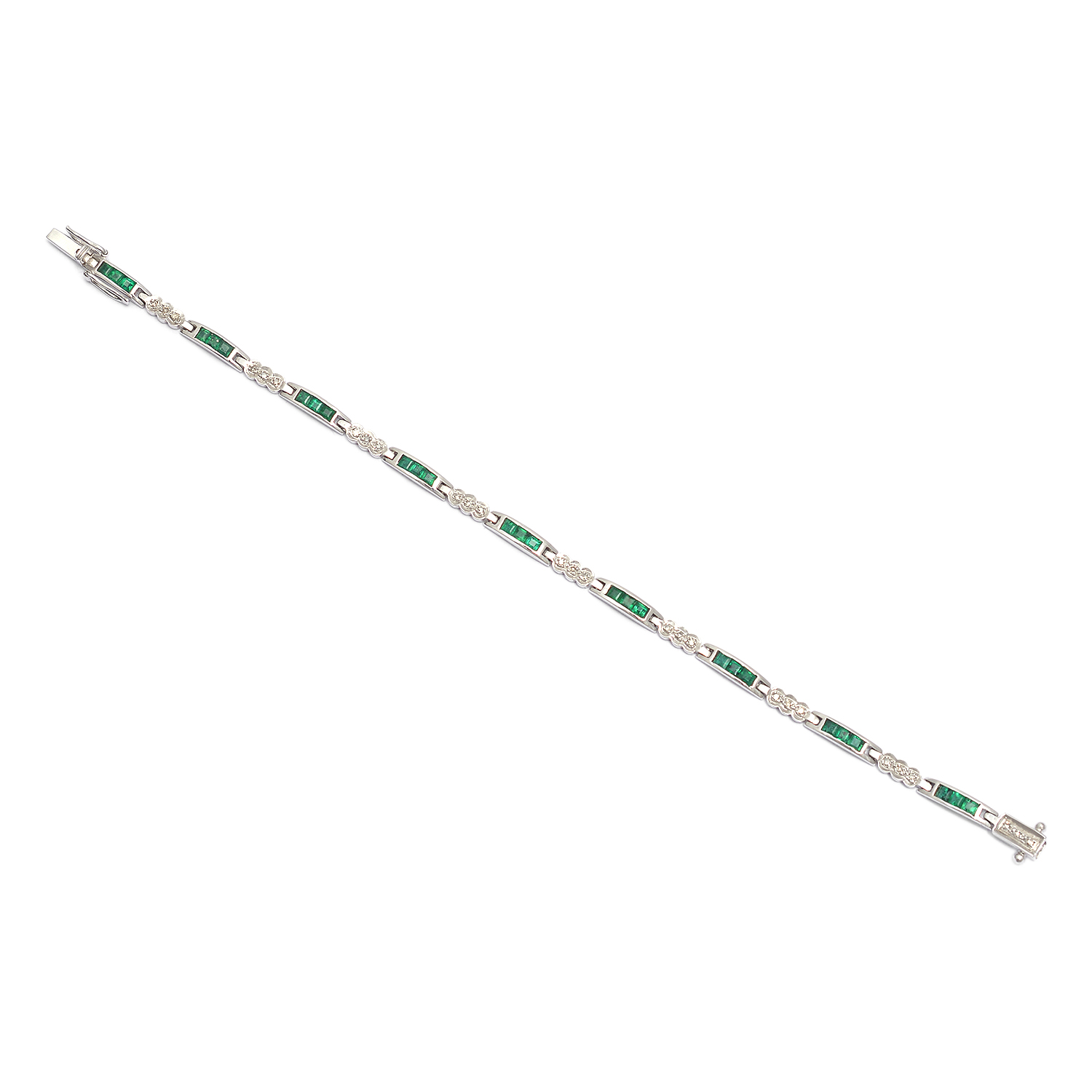 Celebrate timeless elegance with this silver bracelet featuring vibrant square-cut emeralds paired with sparkling diamonds. The exquisite combination of rich green hues and brilliant white stones creates a captivating contrast, all set in polished sterling silver. Designed to add sophistication and glamour to any outfit, this bracelet is perfect for both special occasions and everyday luxury.