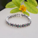 Showcase your love for vibrant luxury with this stunning piece crafted in 18KT white gold, featuring square-cut emeralds, rubies, blue sapphires, and brilliant diamonds. The vivid colours and classic sparkle blend beautifully for a look that’s both striking and timeless. Ideal for adding a pop of colour to special occasions or elevating your everyday style, this elegant design is perfect for those who appreciate fine jewellery with a unique, colourful twist.