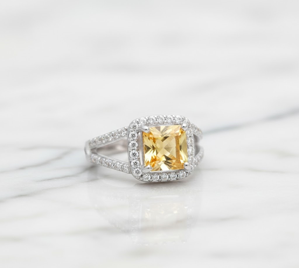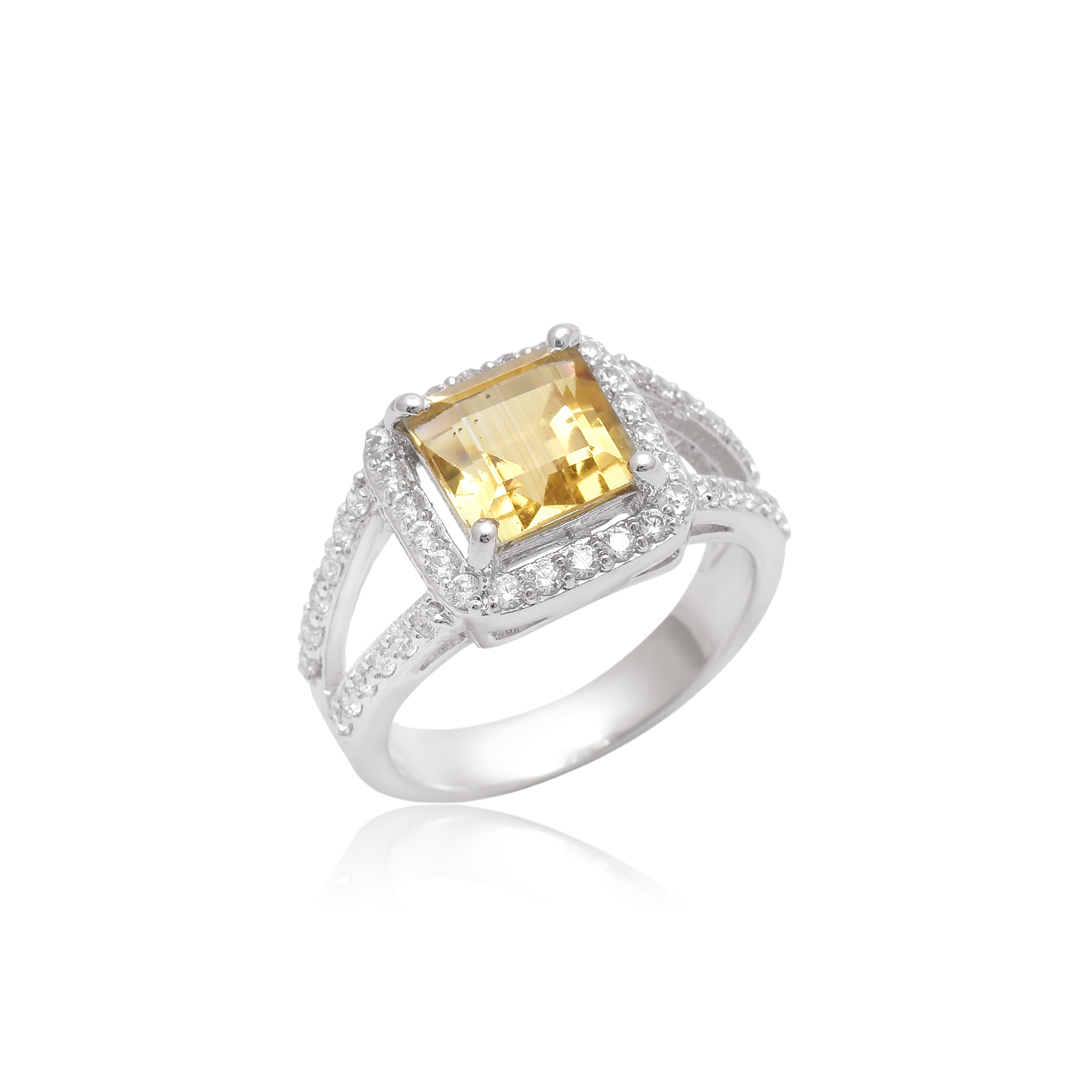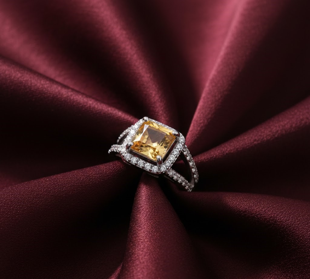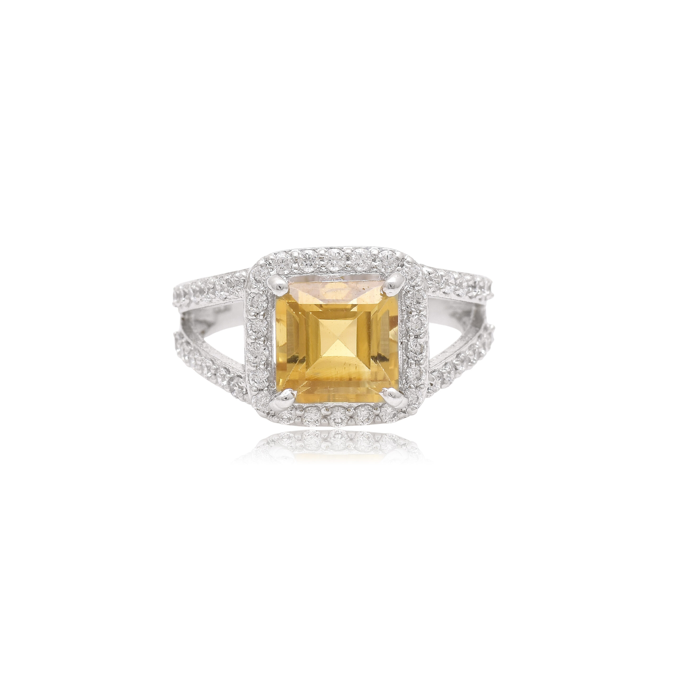 Handcrafted in premium 925 Sterling Silver, this statement piece features a brilliant square-cut golden topaz at its center. Known for its rich, honey-colored hues, the topaz is framed by shimmering natural white zircons.