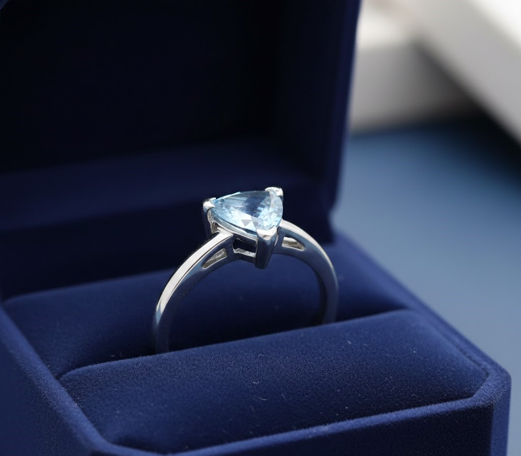 A single sky-blue gem floats in silver like a drop of morning light. Pure, delicate, and endlessly graceful — simplicity at its most radiant.