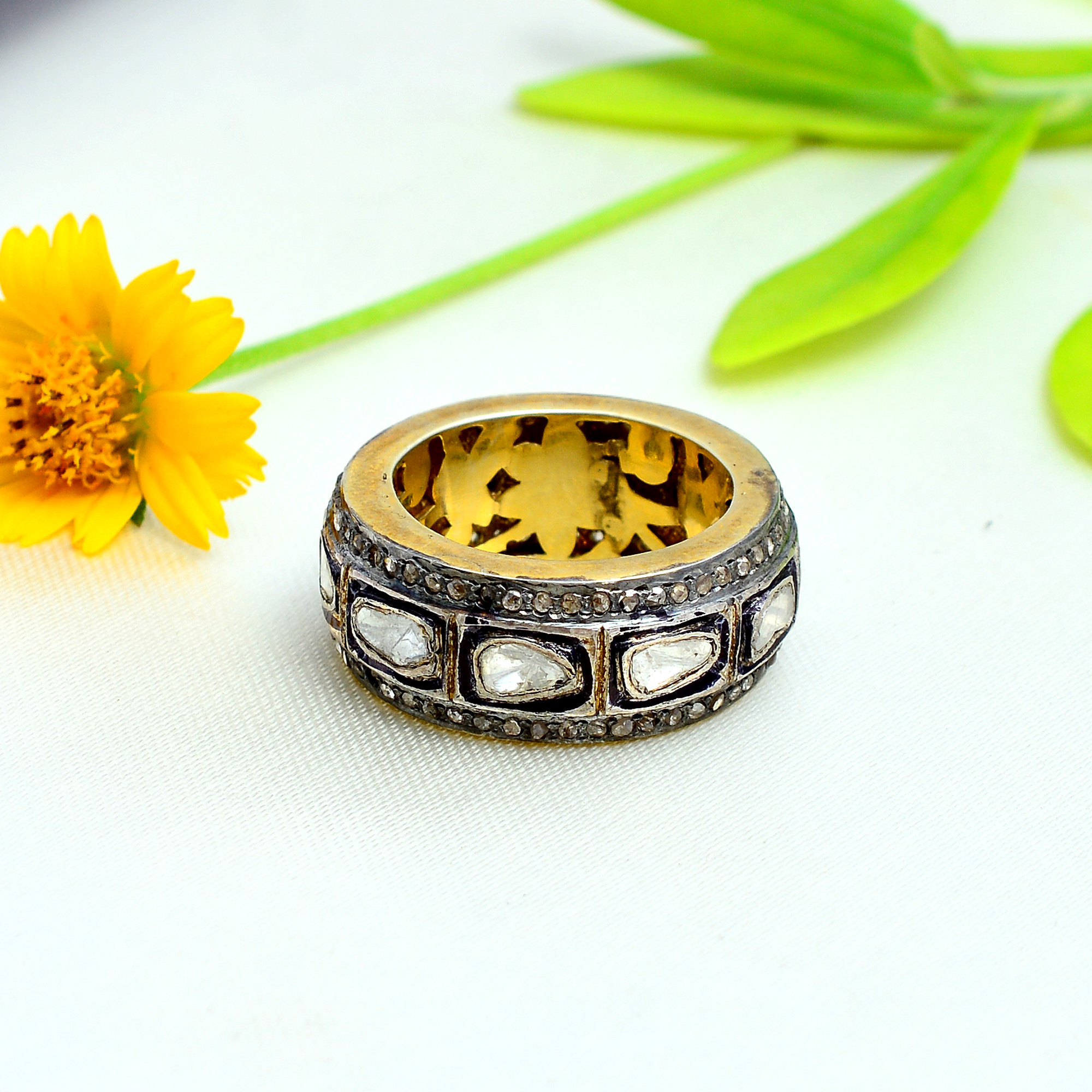 Discover timeless elegance with this handcrafted ring featuring raw, uncut diamonds set in gold-plated sterling silver. The natural texture of the diamonds adds an organic charm, making each piece truly one-of-a-kind. A bold statement of sophistication and individuality, this ring blends rustic beauty with refined craftsmanship. Perfect for those who embrace originality and want to wear something that tells a story of nature and luxury in perfect harmony.