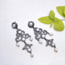Step back in time with this elegant pair of Victorian-inspired earrings, featuring lustrous pearls beautifully paired with sparkling diamonds. Crafted in polished sterling silver, these earrings blend antique charm with timeless sophistication. The gentle glow of pearls complements the subtle brilliance of diamonds, creating a perfect balance of classic luxury and delicate beauty. Ideal for those who love vintage elegance and refined craftsmanship in every detail.